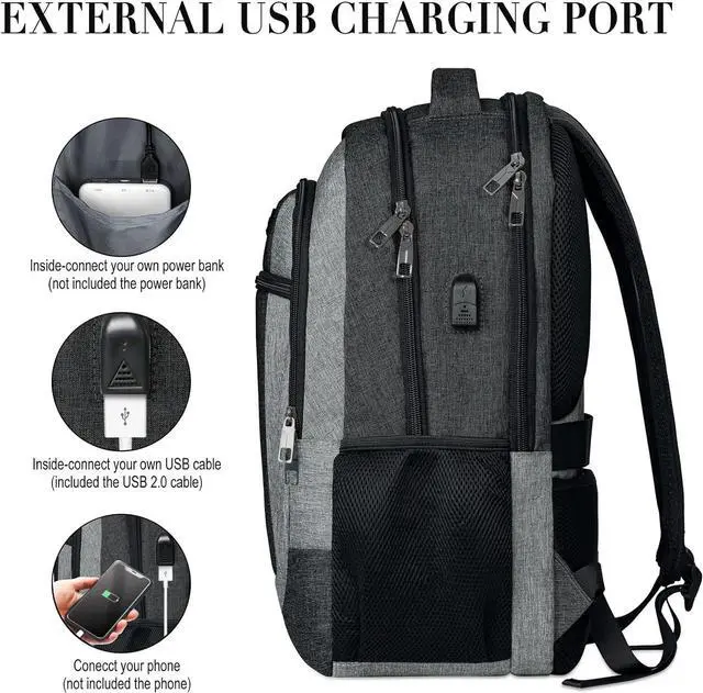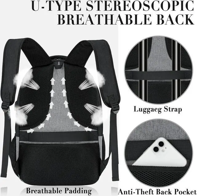 USB PORT &ANTI THEFT DESIGN: With built in USB charger outside and built in charging cable inside, this USB backpack offers you a more convenient way to charge your phone while walking. A luggage strap allows backpack fit on luggage/suitcase, slide over the luggage upright handle tube for easier carrying. With a hidden anti theft pocket on the back protect your valuable items from thieves, please be assured that the use of