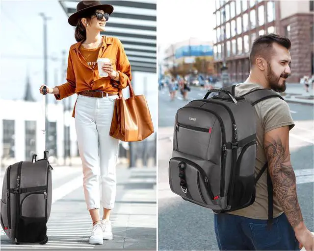 [TSA-Friendly Design & Duarble Material] TSA-Friendly feature makes it getting through airport security quickly and easily by lying the laptop flat without removing it from the bag. The rolling backpack is made of durable high-quality polyester anti-tear material, waterproof, and stylish business style. Reinforced edges and steel frame, thicker bottom panel can carry relatively large weights.
