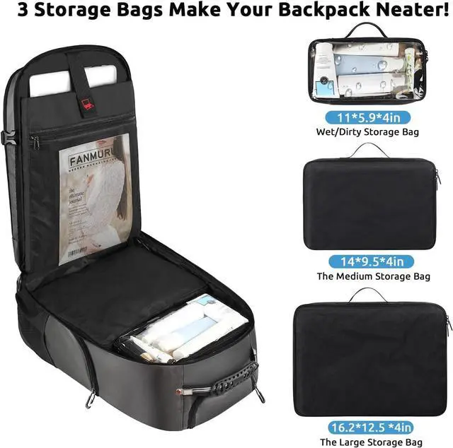 [Extra Packing Bags for Travel] The backpack with wheels comes with three additional multi-functional storage bags. 2 clothes storagre bags to keep your items organized, and 1 wet/dry separation bag to separate wet towels, dirty clothes or toiletries from dry items. These can effectively keep the backpack neat and not get wet.