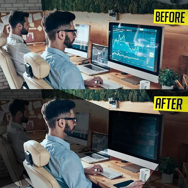 Dark Screen For Others -- Clear view for you. The computer privacy filter makes the screen appear dark when looking at it from an angle (the angle is about 30°- 60°), but bright when looking directly at it. To change the privacy angle from 60° to 30° degrees - simply adjust your monitors brightness level.