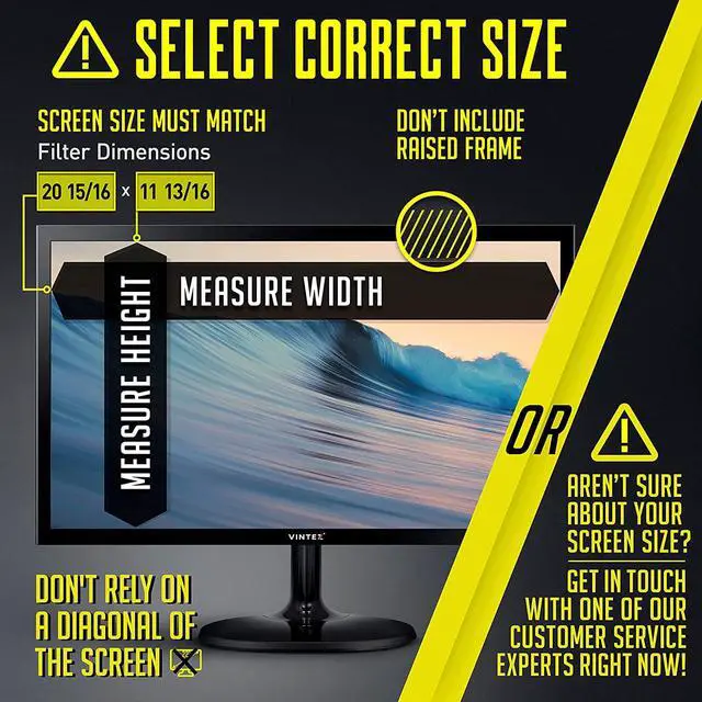 Enhanced Privacy -- Vintez Computer privacy screen filter is perfect for public and high traffic areas. Vintez Blackout Privacy Screen Filter is engineered to be ideally compatible with HP, Samsung, Dell, Lenovo, Acer, Asus, LG, ViewSonic, and other monitor brands. Please confirm the width and height measurements for your computer screen before ordering. We advise against making a selection based solely on a computer screens diagonal size.