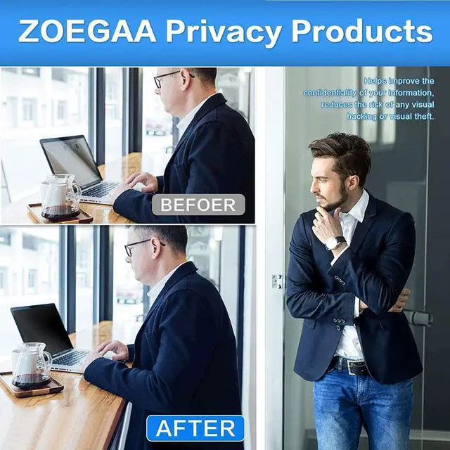5. Package Contents privacy screen laptop 13.3 inch package includes: 13.3 inch laptop privacy screen filter 16:10, cleaning cloth, double-sided tape, slide mount tabs, instruction manual. ZOEGAA specializes in providing best-in-class privacy solutions to individuals, small businesses, corporations, government and educational institutions.