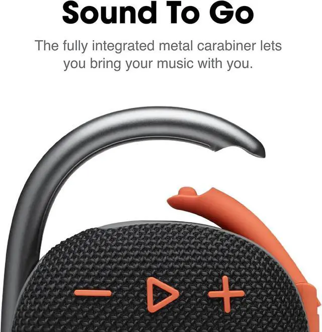 UP TO 10 HOURS OF PLAYTIME - The JBL Clip 4 features a built-in rechargeable Li-ion battery with up to 10 hours of battery life, plus a redesigned carabiner, so you can easily hook it to your clothes, backpack, or belt loop.