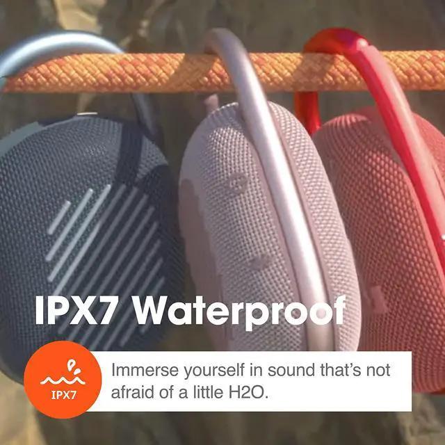 WATERPROOF & DURABLE - No more worrying about rain or spills: The IP67-rated JBL Clip 4 is dust resistant & completely waterproof. Plus, the improved fabric material & rugged rubber housing protect the speaker on all your outdoor adventures.