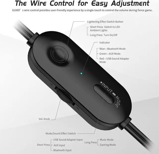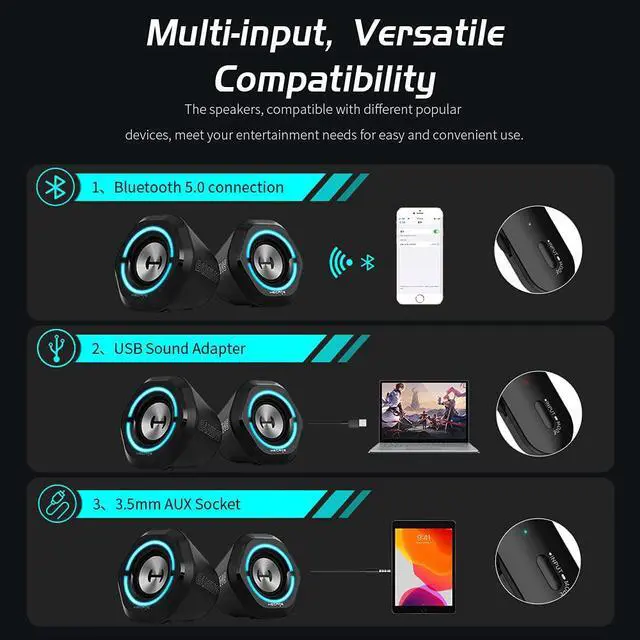 The Wired Control for Easy Adjustment:The gaming speakers for PC with its easy wired control, offer user-friendly experience by controlling the volume, lights effect, gaming or music mode and the 3 input modes