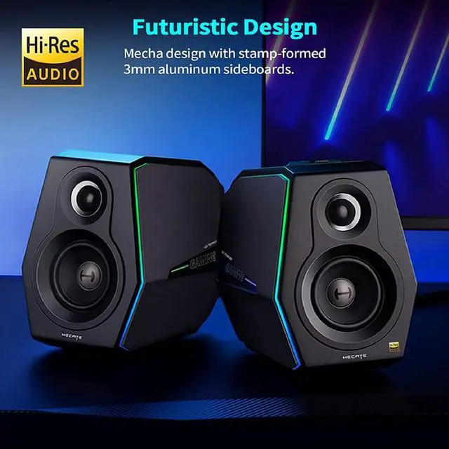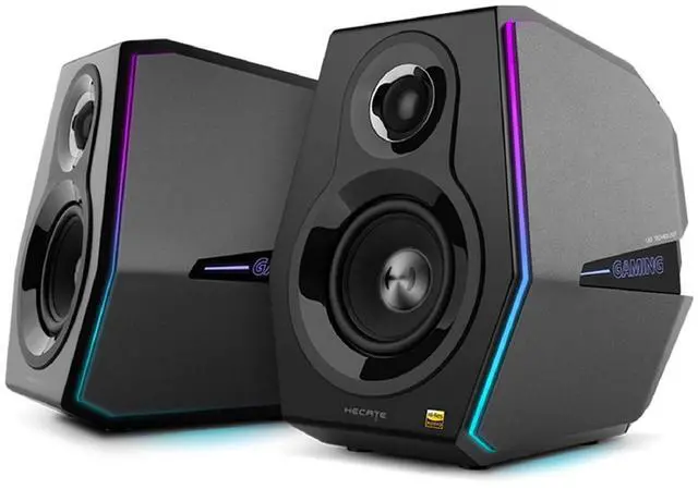 Unique DesignCombining a traditional MDF speaker casing with a futuristic, aluminium side panel design, EDIFIER have created a stylish speaker featuring their flagship acoustic tuning and RGB lighting effects.