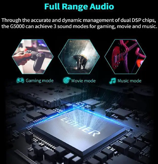 Three Sound EffectsThrough the accurate and dynamic digital management of dual DSP chips, the G5000 can achieve 3 different sound modes.