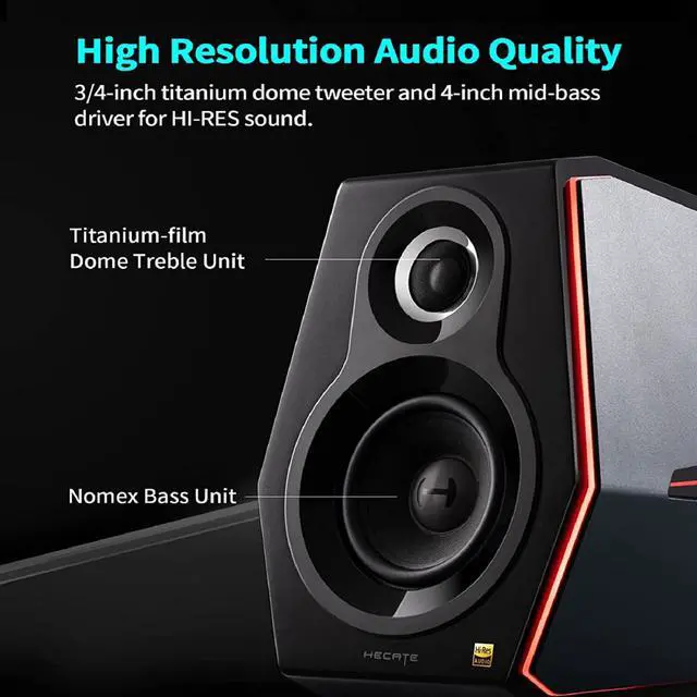 HECATE by Edifier G5000 Bluetooth Computer Gaming Speakers, Hi-Res Audio Wireless Desktop Speakers, 88W RMS Powered, Bluetooth 3.5mm AUX USB Optical Coaxial Inputs, for PC/PS4/PS5/Laptop/TV, RGB Light