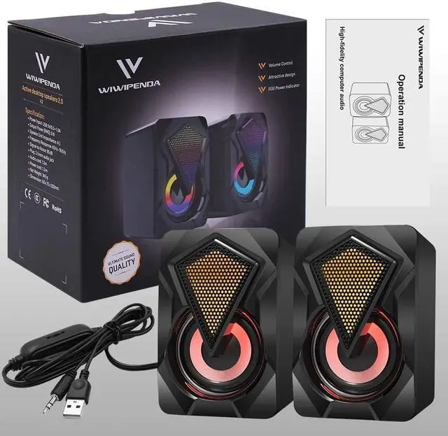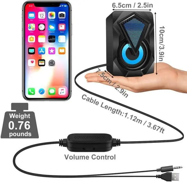 Portable Small Speaker: Mini size 60 * 70 * 100mm, ideal for under the screen or on either sides of the computer. Compact size suitable to be carried around. Built-in 2*3W stereo speakers, 5V/ 1A and up power supply ensure louder sound and lower distortion.