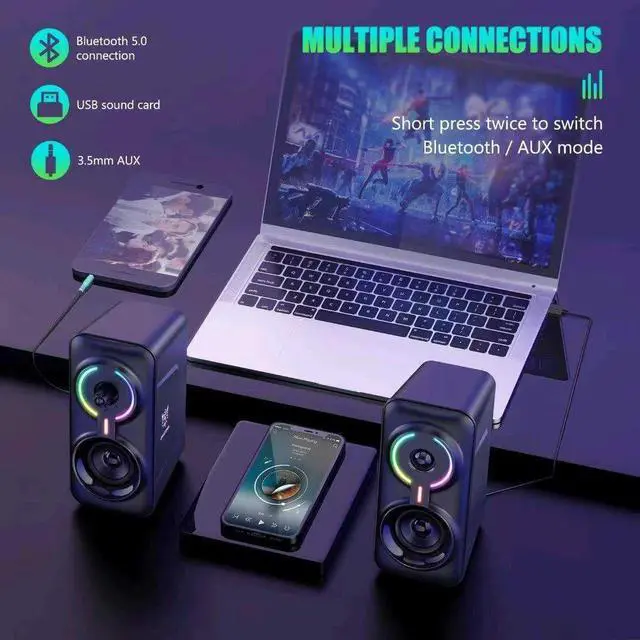 L6 BT 2.0 Table Colorful LED Light Wired USB Power RGB Gaming Computer Speaker Box