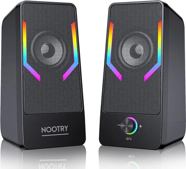 Effortless One-Knob Control Delicate one-knob design enables these stereo PC speakers to easily realize ON/OFF, switch light mode, switch mode, and volume up and down instead of complicated independent buttons.