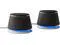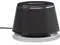 Brushed black metal finish and blue LED accent lights for sleek, modern style; padded base for scratch-free placement and stability