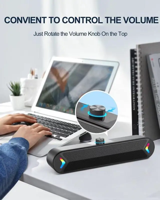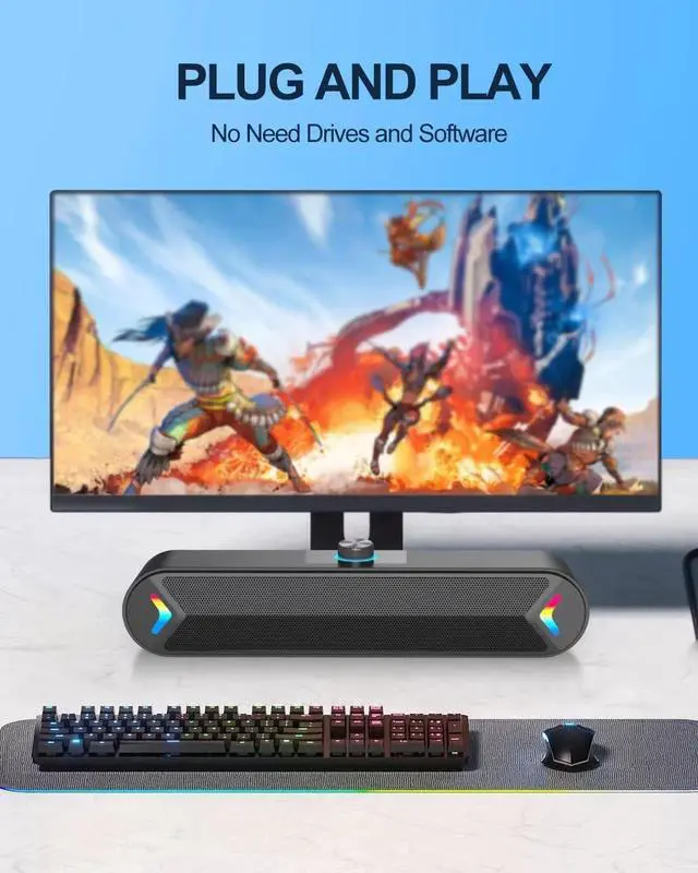 Stereo Sound: The PC speaker uses upgraded 2x5W technology to deliver the clear and crystal sound. The soundbar speaker can enhance your listening experience when you enjoying indoor movies, videos, music and games.