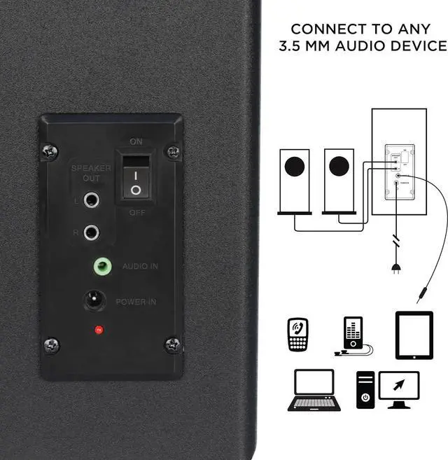 SOUND QUALITY WITH BOOMING SUBWOOFER: Satellite channel speakers and bass heavy sub woofer stream audio from any device using a standard 3.5 mm AUX input or headphone port