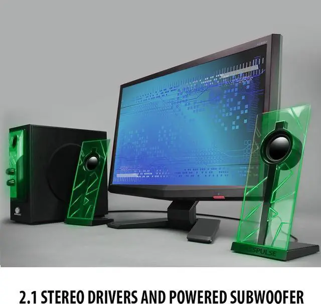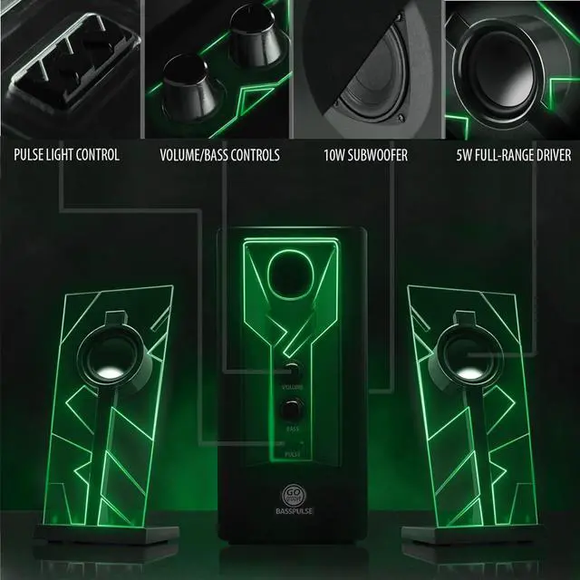 GLOWING GREEN LED ACCENT LIGHTS: Bright lights provide bold flare and pulse to the beat of the music when the bass equalizer is turned up past 80%