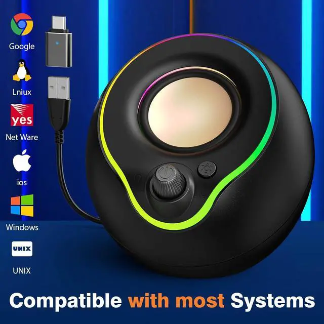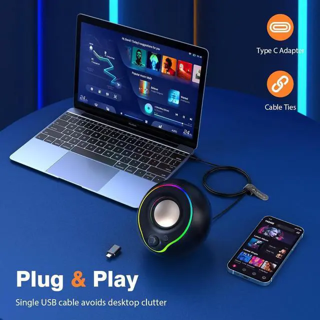 Fully Compatible: computer speakers with Type C adapter. Can connect computers, laptops through USB cables, but also connect phones, Apple computers, and other devices through Type C.