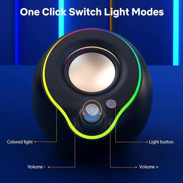 Easy Access: Plug play USB computer speakers, controlled using volume knob and separate light buttons, no other complicated buttons, very simple to use.