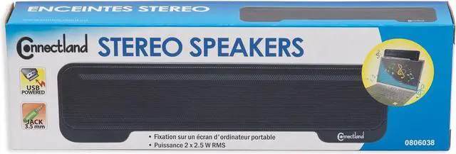 Rated power: 2 x 2.5W. Full-range stereo sound and compact size optimized for mobile listening