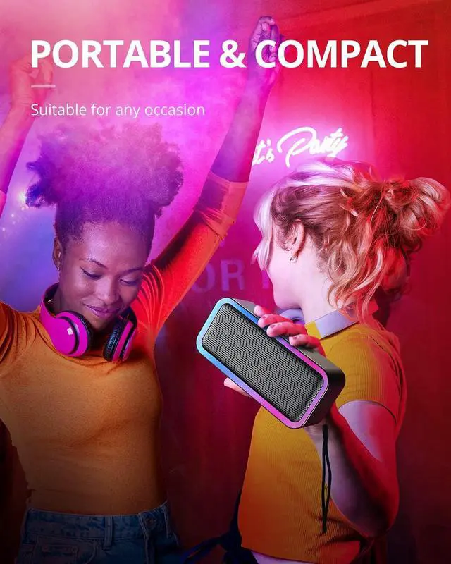 SHOCKING Hi-Fi LOUD SOUNDS: The bluetooth speaker equips with 10W of stereo full-range drivers speaker and advanced digital signal processor, which pumps out crisp treble, detailed mids bass, deliver shocking sound without distortion even at any volume.