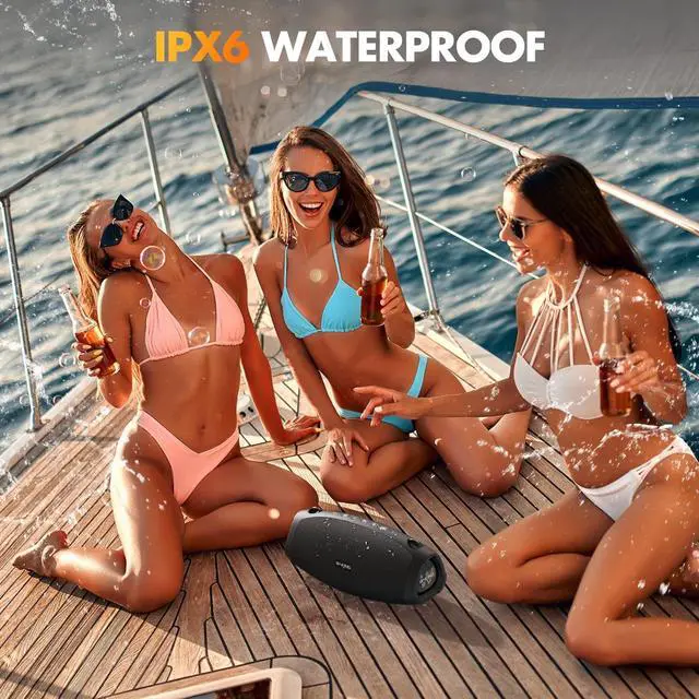 MULTIPLE FUNCTIONS- The X10 Bluetooth speaker have 2 EQ modes - indoor mode delivers boosted bass while outdoor mode provides crisp sound. durable fabric material and sturdy rubber housing ensure that your speaker is built to withstand all of your adventures. The portable loud bluetooth speaker also features a 3.5 mm AUX port, a TF card slot, and a mic for hands-free. It's the perfect outdoor speaker for trips, beach, and pool parties, and makes a great gift for Thanksgiving and Christmas!