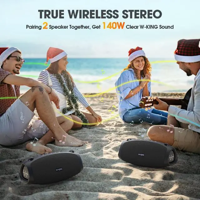 BLUETOOTH 5.0 & 140W HI-FI STEREO SOUND- W-KING X10 wireless speaker adopts Bluetooth 5.0 chip, which can provide incredible 100 -foot wireless range, faster bluetooth connection and more stable signal transmission. Connect 2 W-KING X10 portable wireless bluetooth speakers through bluetooth to form a wireless left and right channel system, amplify your listening experience to epic levels and rock the party perfectly by doubling the bass (W-KING X10 and W-KING X10-1 can't be paired).