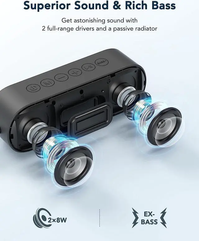 [Superior sound quality] The dual 7W high-performance power driver provides shocking sound without distortion even at maximum volume. The powerful subwoofer provides an immersive listening experience, crystal-clear treble, and extremely deep bass.