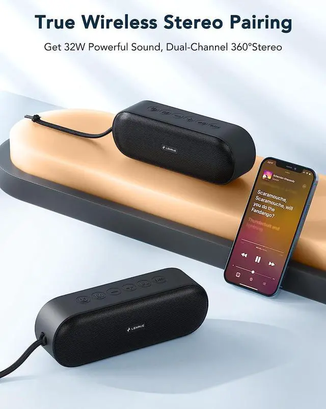 [IPX7 Waterproof Bluetooth Speaker] The LENRUE A15 Bluetooth speaker is designed and provided with the highest protection grade of IPX7, completely waterproof, for dustproof, mudproof, rainproof, snowproof, pool, shower, beach, party, hiking, barbecue, etc.