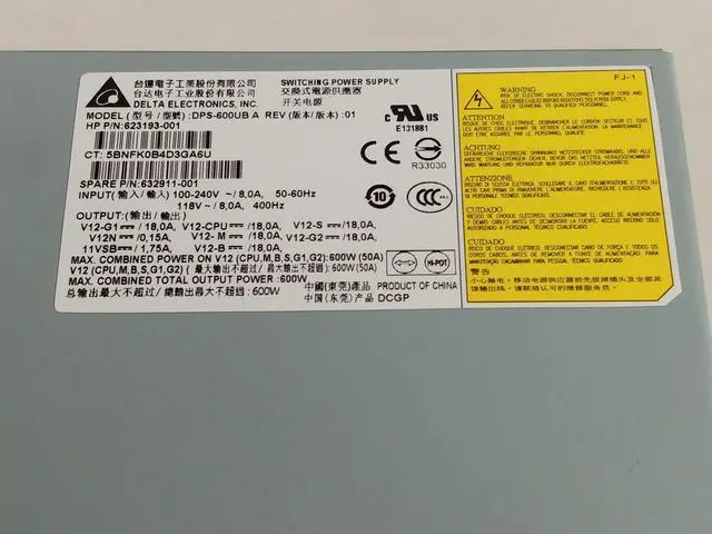 HP 623193-001 600 Watt 90 Efficiency Rating For Z420