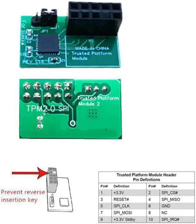 Module Note: Please check the motherboard manual to confirm that your motherboard supports TPM 2.0 technology Some motherboards need to plug in the TPM module or update to the latest BIOS to enable the TPM option. Please cancel other security technologies of the computer before installation.