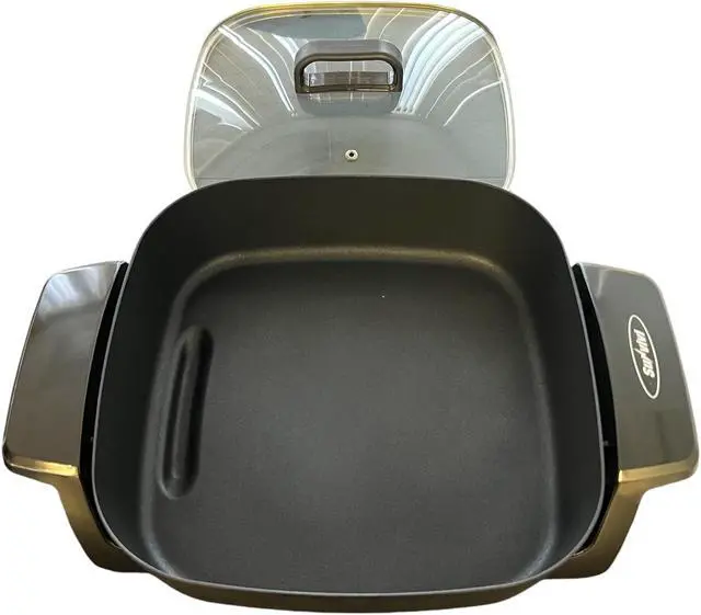This electric skillet is great for cooking cooking healthy and delicious homemade meals in minutes. The extra-thick base allows even heat distribution to cook your favorite meals quickly with less energy