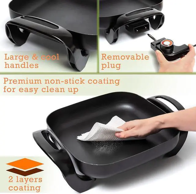 Spoil Your Family With The Most Delicious Fried Delights: Take your cooking skills to the next level with our multipurpose and economically designed electric nonstick skillet. Glass lid with a steam vent combined with the heat-resistant handles will help you cook your favorite foods like a pro.