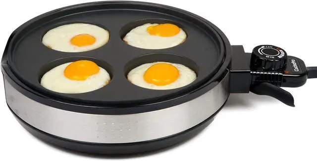 Multi Baker- Deluxe cooker with 3 interchangeable skillets. Electric appliance with temperature control.