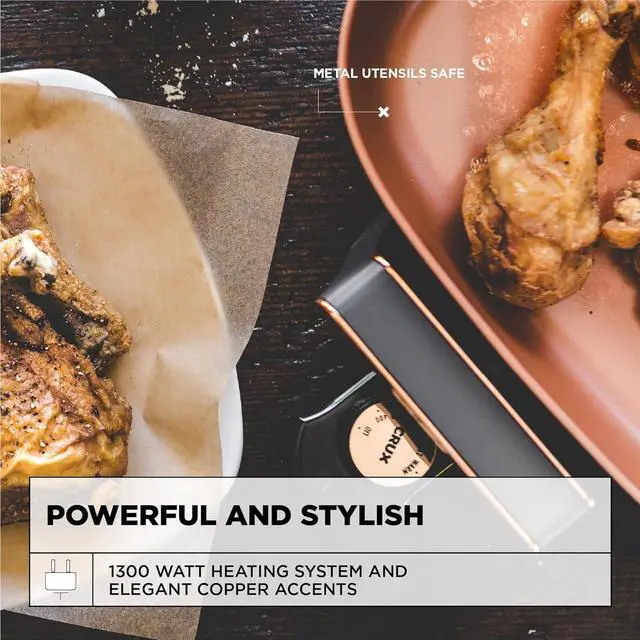 Premium Features: This griddle features a non-stick copper ceramic coating that's metal utensil safe, 10 times more durable & PTFE/PFOA free, a temperature dial & removable temperature probe, plus a glass lid to keep an eye on your cooking