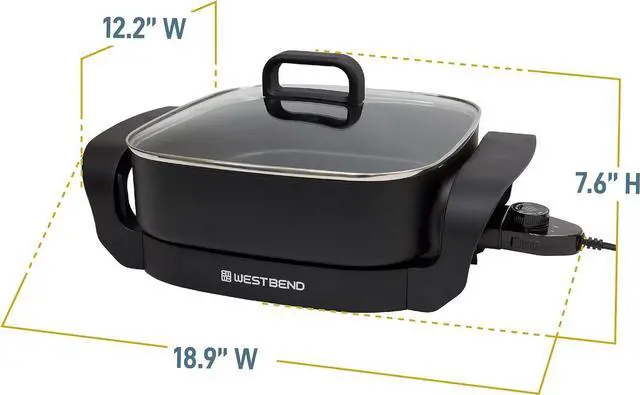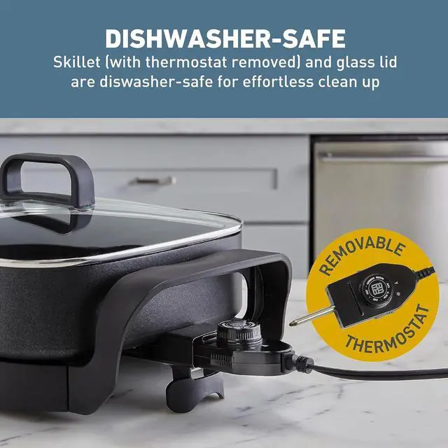 ADJUSTABLE REMOVABLE ELECTRIC SKILLET TEMPERATURE CONTROL: Precisely control temperature for cooking and warming with the adjustable, removable thermostat