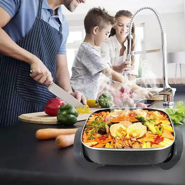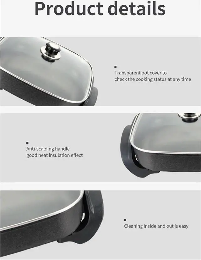 Uniform Heating: Electric frying pan adopts quadrangular pot design, increasing the heating area at the bottom, fast and uniform heating of ingredients, cooking is more convenient.