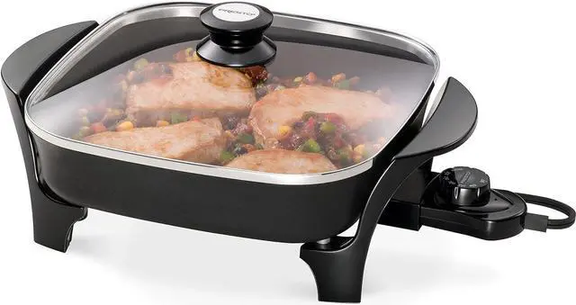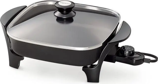 Deluxe nonstick surface inside and out for stick-free cooking and no-scour cleaning. dishwasher safe with heat control removed.