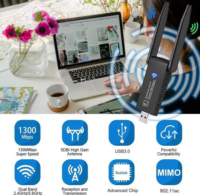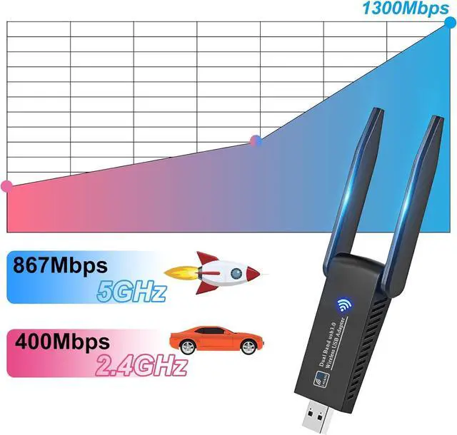 MU-MIMO WiFi Adapter: This 802.11 ac wifi adapter provides 867Mbps wireless speed on 5GHz wifi band or 400Mbps on 2.4GH z band, widely supports 802.11 ac/b/g/n standard.