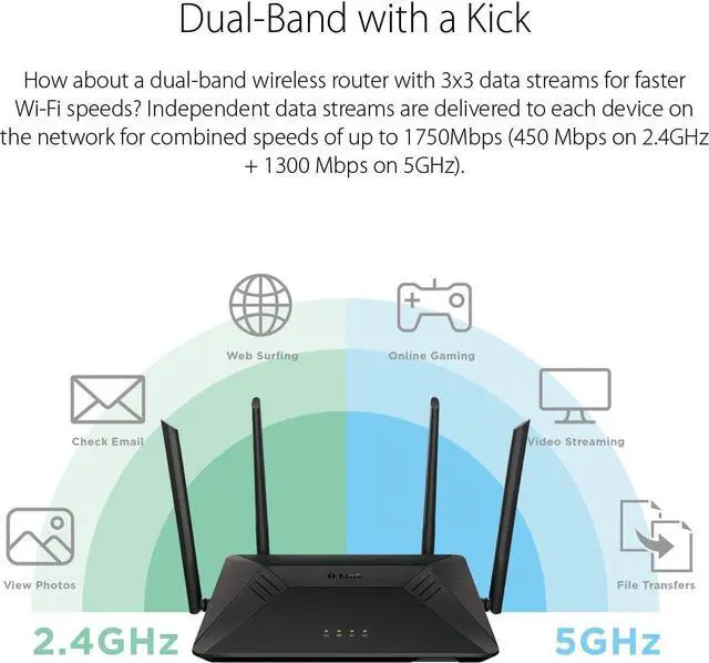 Provides speeds up to 450 Mbps ( 2.4 GHz) + 1300 Mbps (5 GHz) for ultra-fast wireless transfer rates for all of your web browsing, HD media streaming, and gaming needs