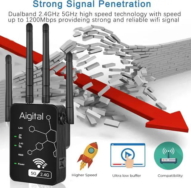 1200Mbps Fast Speed - Wifi extender booster offers speeds of up to 1200Mbps under 5GHz & 2.4GH z, with 360 degree high-speed connection for happy Surfing HD video and online game. Compatible with any WiFi Router, Gateway, Access Point ( 2.4GH z - 300Mbps / 5GHz - 867Mbps).