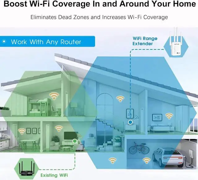 Boost Whole Home Wi-Fi: WN539N5 wirelessly connects to your existing router and expands its Wi-Fi signal into areas it cant reach on its own. Boost WiFi coverage up to 2, 640 sq. ft. and connect up to 35 devices; always enjoy the strongest Wi-Fi when youre walking around with no need to search around for a stable connection.
