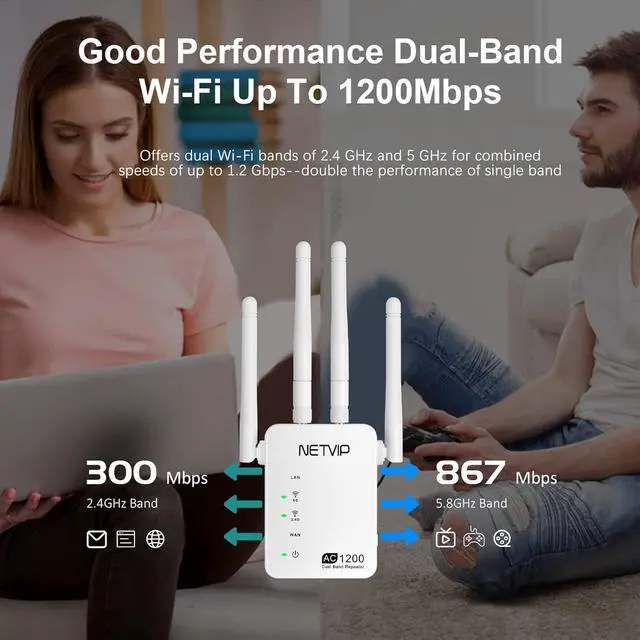 Faster Dual Band Wi-Fi up to 1200 Mbps: WN539N5 delivers dual band ( 2.4 GHz and 5 GHz) to transmit Wi-Fi signals, doubling the performance of each band. It enables you to keep more devices connected at the same time with its 300 Mbps 2.4 GHz and 867 Mbps 5 GHz dual bands. Use the 2.4 GHz band to send email and browse the web and the 5 GHz band for gaming and HD streaming.