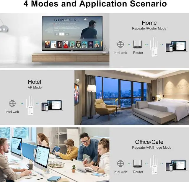 Fast Wired Connection: Simply plug an Ethernet cable into its Ethernet port and easily turn your wired internet connection into a dual band wireless access point. Wifi range extender are compatible with any router or access point.
