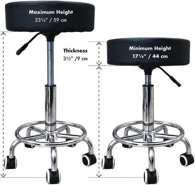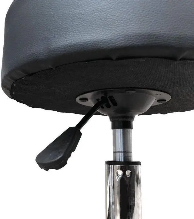 Reinforced chrome iron leg base with chrome footrest ring for extra comfort, great for guitar player, hairdresser, lecturer etc.