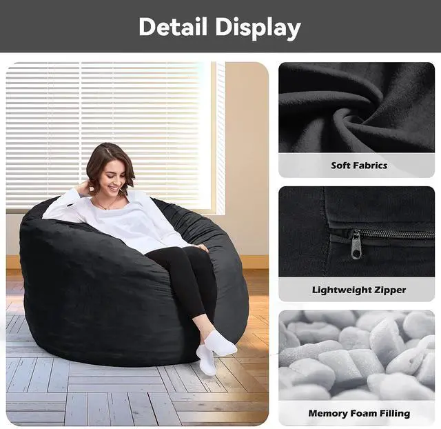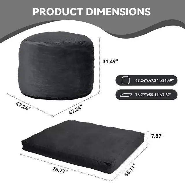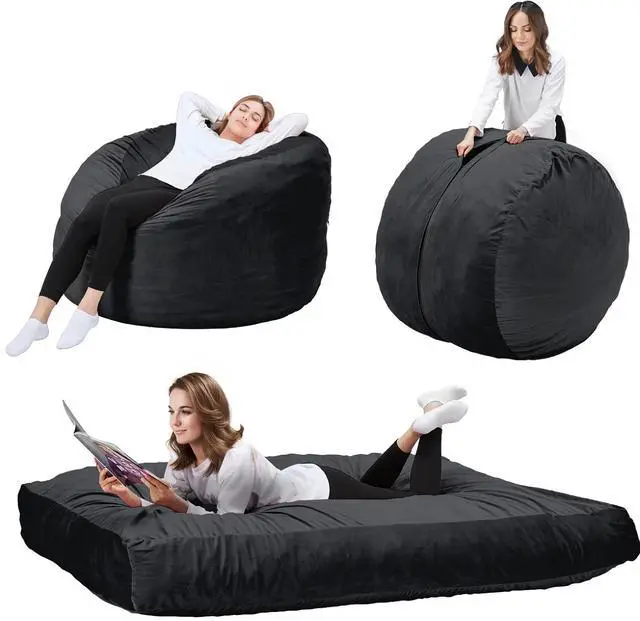 Experience the ultimate in comfort and flexibility with this 5-foot 2-in-1 bean bag chair and bed. Designed for adults and kids, this oversized lounger is filled with premium high-density foam that molds to your body and maintains its shape. The removable, machine-washable flannel cover is soft, breathable, and easy to maintain. Whether youre gaming, reading, lounging, or sleeping, this convertible bean bag fits your lifestyle. Use it in dorms, living rooms, playrooms, or even outdoors - no assembly needed, just unbox and relax.