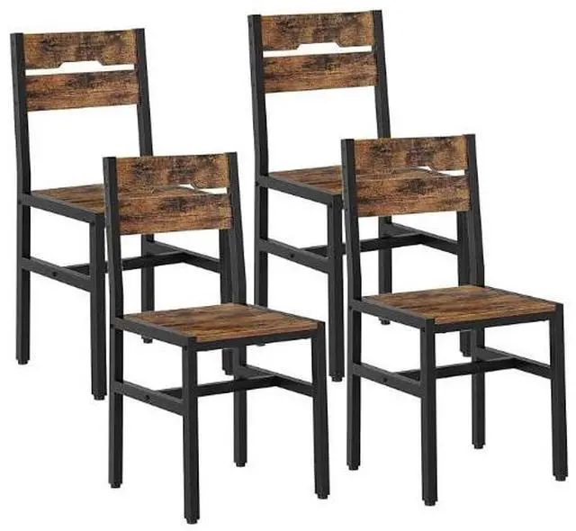 Dining Chairs Set of 4, Rustic Wooden Kitchen Chairs with Backrests and Metal Frame, Modern Farmhouse Dinner Chairs for Kitchen, Easy Assembly, Living Room, Dining Room, Rustic Brown and Black