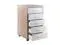 The drawer facings are finished in linen white with modern matte-silver plastic drawer pulls.
