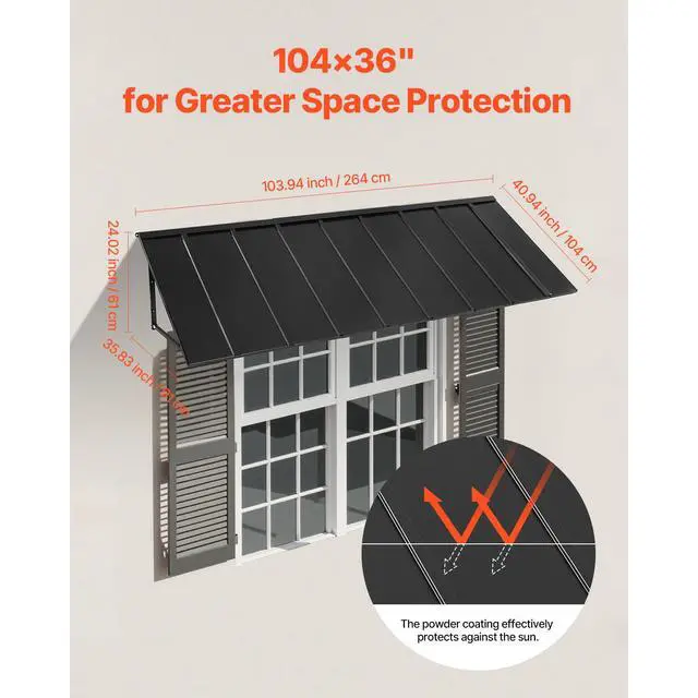 Sunshade Area: 104 × 36 inches / 2641 × 910 mm