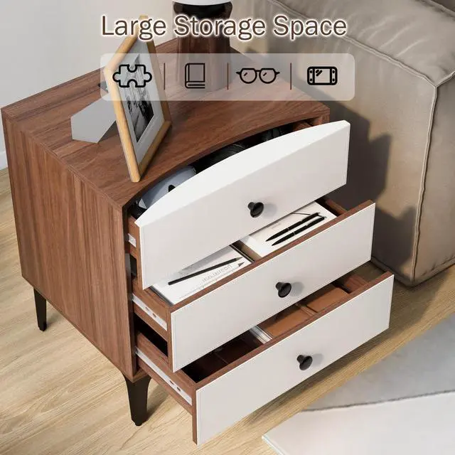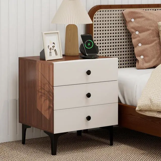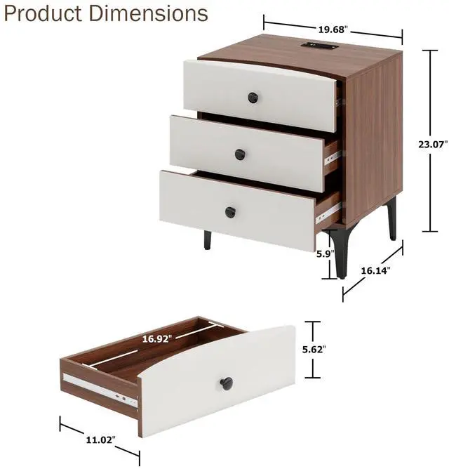 The three large drawers keep books, remotes, glasses, and personal items neatly hidden while the built-in charging station (AC, USB, and Type-C ports) powers multiple devices simultaneously, reducing clutter and making bedside charging effortless.