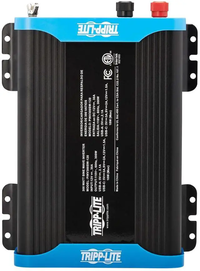 Tripp Lite series 300W Compact Power Inverter - 2x 5-15R, USB Charging, Pure Sine Wave PINV300SW-120