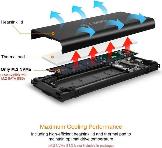 Passive CoolingThe exposed U.2 SSD from the enclosure allows full passive heat dissipation to optimize cooling performance.